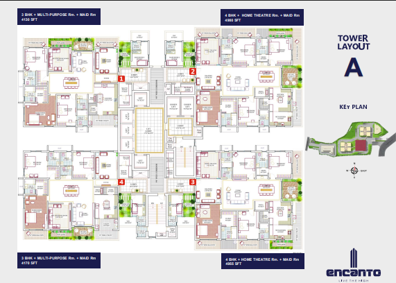 | 4 BHK + HOME THEATRE Rm. + MAID Rm | 4955 SFT | On Request | |