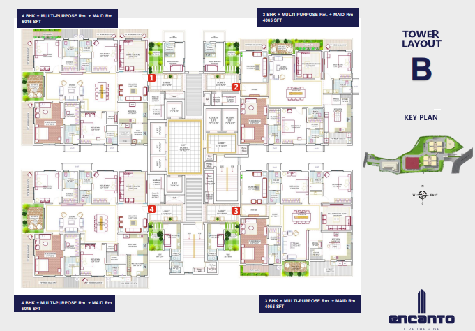 | 3 BHK + MULTI-PURPOSE Rm. + MAID Rm | 4065 SFT | On Request | |